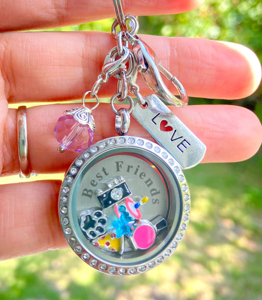 ✨ 1.Choose your locket ✨2. choose your charms✨ 3.add a background plate✨4.clip on a dangle charm✨